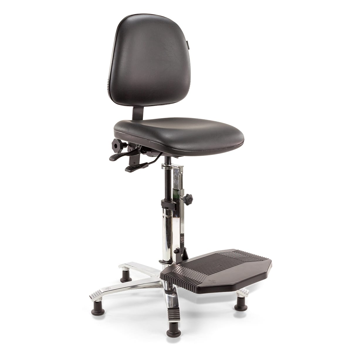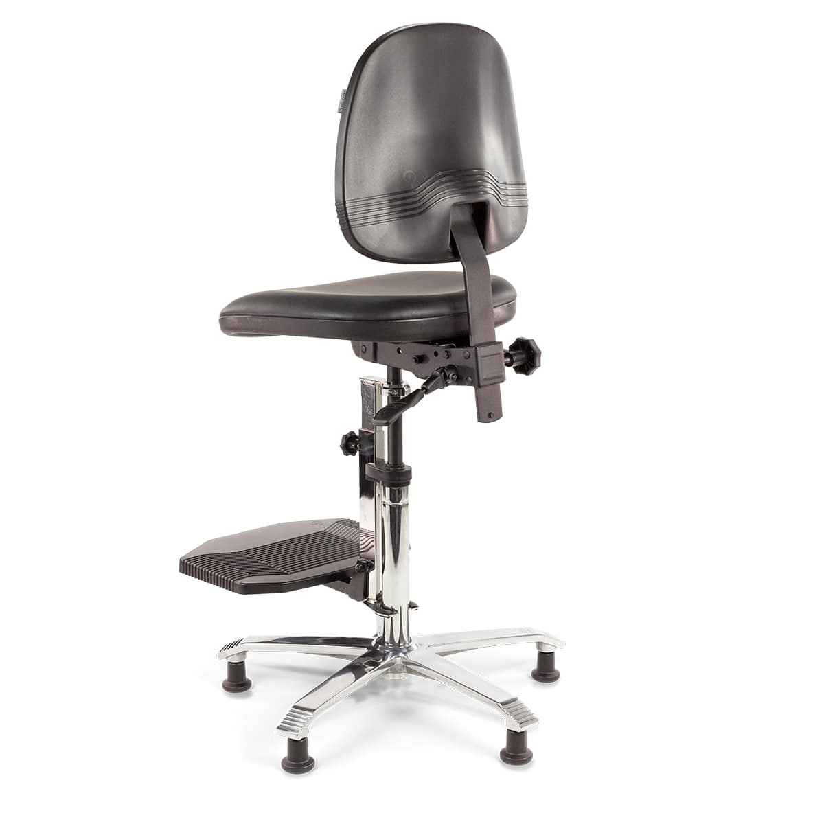 Te laag of te hoog zitten, heeft een nadelig effect op de zithouding. Je zit sneller voorovergebogen of met opgetrokken schouders. Dat kan leiden tot klachten. Het is belangrijk de hoogte van de stoel goed aan te passen aan je werkhoogte. De Score Ergo 2308 ESD is geschikt voor een werkhoogte tussen de 90 en 115 cm. Verder kenmerkt deze variant zich, doordat deze stoel -als enige stoel in deze lijn- een voetenplank heeft in plaats van een voetenring. Werk je aan een lager werkblad dan 90 cm? Of prefereer je een voetenring? Dan kies je beter voor een van de andere stoelen in de Score Ergo 2300 ESD-stoelenlijn: