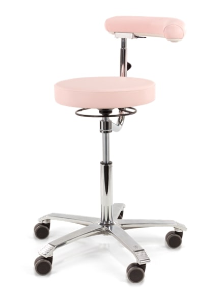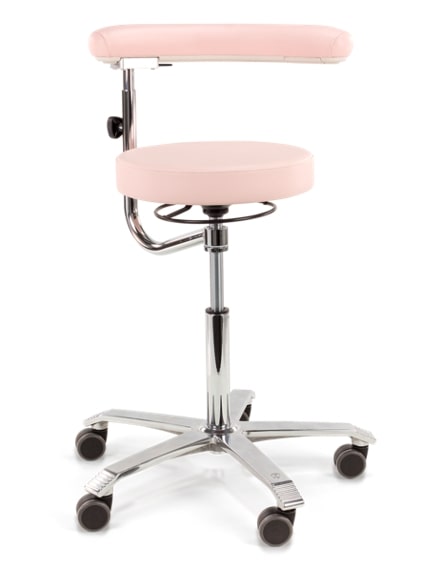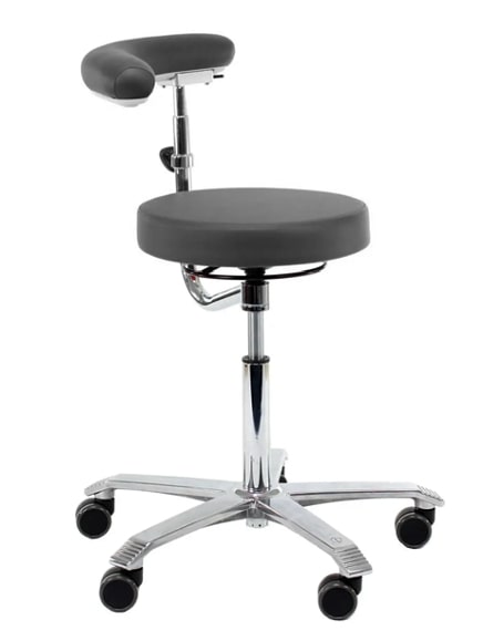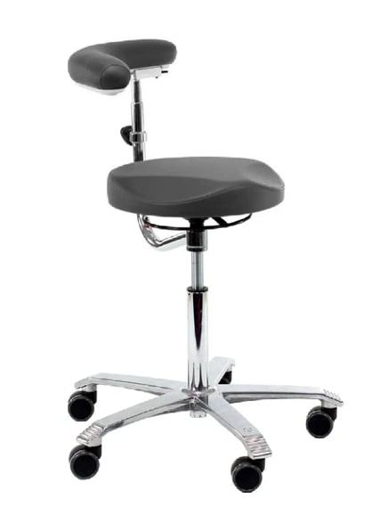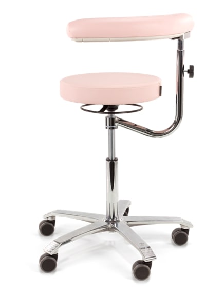 Verrijdbare instelbare krukken zijn goede toevoeging aan het meubilair in de zorg en dentale sector. Je kunt er vlot mee werken, je bent flexibel en je kunt ook op de juiste hoogte werken. Soms is het handig om op een kruk wat extra ondersteuning te hebben. Het ene moment heb je wellicht meer behoefte aan een goede ondersteuning van je armen en de andere keer van je rug. In die situaties is deze kruk de oplossing. Hij is namelijk voorzien van een 360° Support. De rugleuning-armlegger kan 360 graden ronddraaien. Op die manier kun je de steun ofwel gebruiken als rugleuning, ofwel als armlegger.