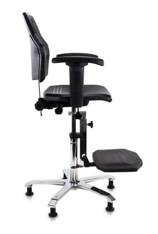 Op zoek naar een robuuste werkstoel met net wat meer instelmogelijkheden en comfort? Werk je aan een werkhoogte tussen de 90 en 115 cm, en wil je graag gebruik maken van een voetenplank om je voeten op te laten rusten (i.p.v. een voetenring)? Dan is de Score Pro 4408 ESD wellicht de stoel die je zoekt. Deze stoel is standaard voorzien van een zitting en rugleuning met een royaler formaat en handig handvat in de rugleuning. Je hebt bij deze werkstoel tevens de mogelijkheid tot het toevoegen van een zitdiepteverstelling en verstelbare armleggers. Kortom: je bent met de Score Pro 4408 ESD van alle gemakken voorzien!