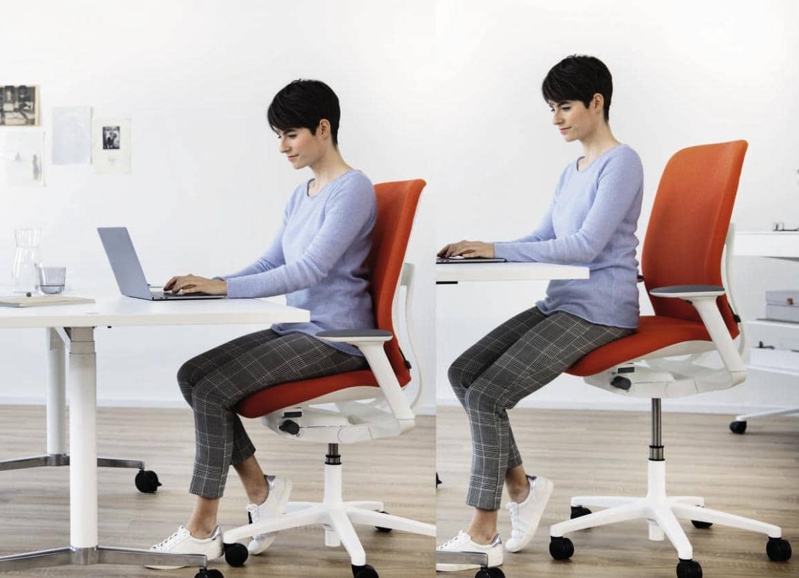 Traditioneel zitten, actief zitten en half staan met 1 bureaustoel